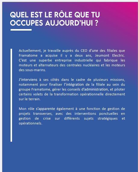 Portrait-Benoît ERBACHER (N2009) Chef de projet intégration et stratégie filiale CHEZ FRAMATOME