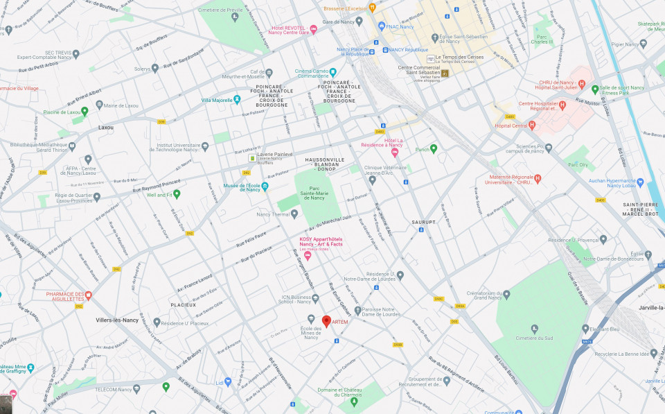 | Bureau de Nancy Mines Nancy Alumni Campus ARTEM BP 14234 92 rue du Sergent Blandan 54042 Nancy Cedex Moyens d'accès Autobus : Nancy Artem (ligne 11) Navette : Campus Artem Blandan (ligne B) Gares SNCF : Gare de Nancy (20 min)
