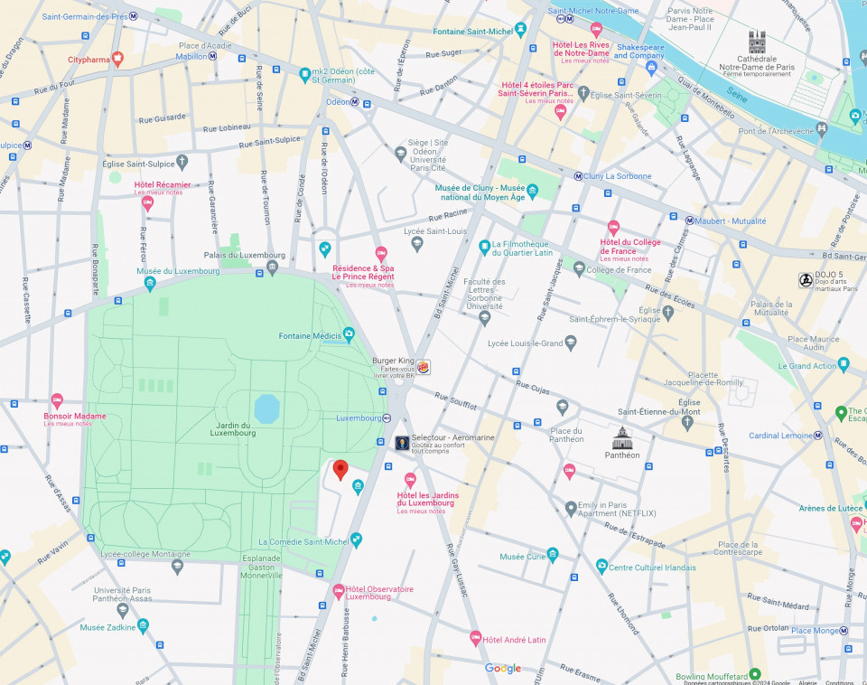 Siège social Mines Nancy Alumni 60 boulevard Saint-Michel 75006 PARIS Moyens d'accès Autobus : ligne 21, 24, 27, 38, 82 RER : Luxembourg (ligne B) Métro : Odéon (ligne 4, 10) Gares SNCF : Gare Sainte Lazare (20 min) Gare de l'Est (25 min) Gare Montparnasse (20 min) Gare de Lyon (20 min) Gare d'Austerlitz (25 min) Gare du Nord (15 min) Liaisons aéroport : Orly (1h en Orlyval + RER) Roissy (45 min en RER B) | ![]() |