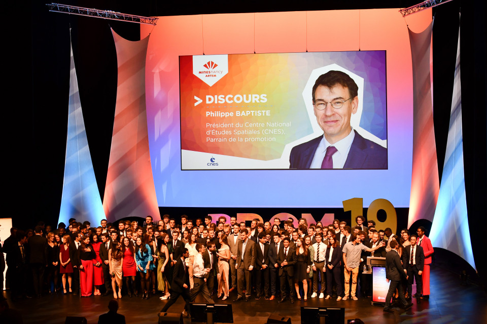 La promotion 2019 était parrainée par Philippe Baptiste (N91), Président Directeur Général du CNES. Lors de cette cérémonie, la promotion 2019 a fait un "class gift" de 3560 euros à la fondation Mines Nancy Alumni.