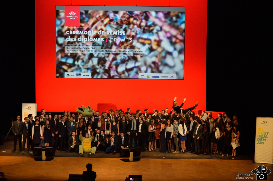 La remise des diplômes de la promotion 2013 a eu lieu le samedi 8 octobre 2016 au centre Prouvé à Nancy. Elle a été précédée par un déjeuner organisé dans les locaux de l'Ecole des Mines de Nancy sur le Campus Artem.