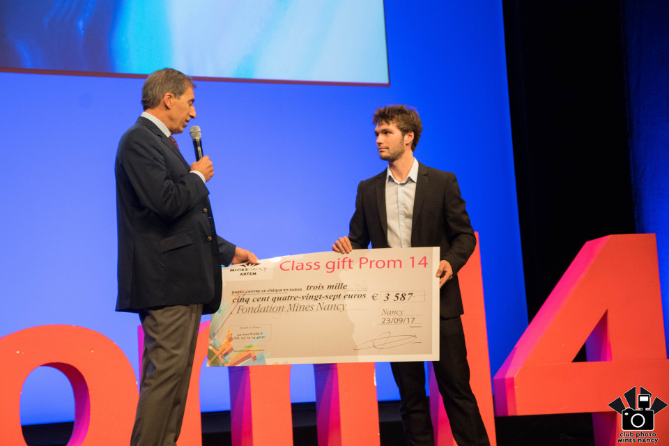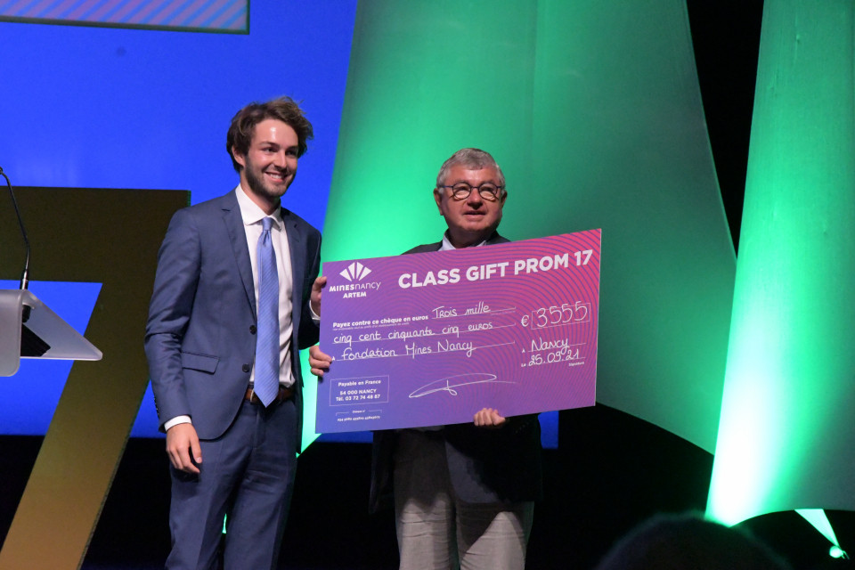 Lors de cette cérémonie, la promotion 2017 a fait un "class gift" de 3555 euros à la fondation Mines Nancy Alumni.