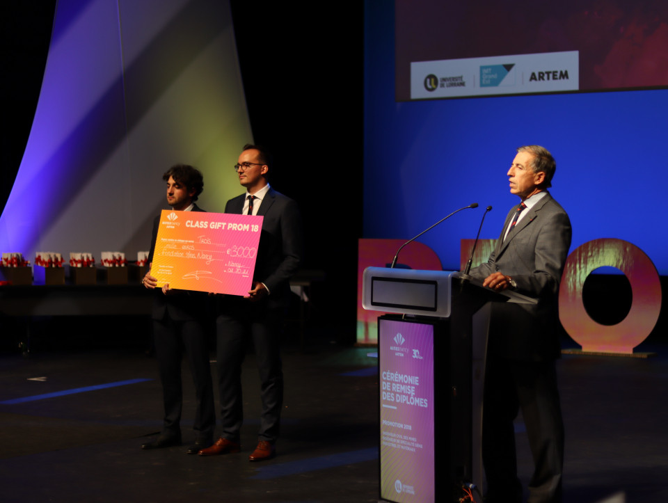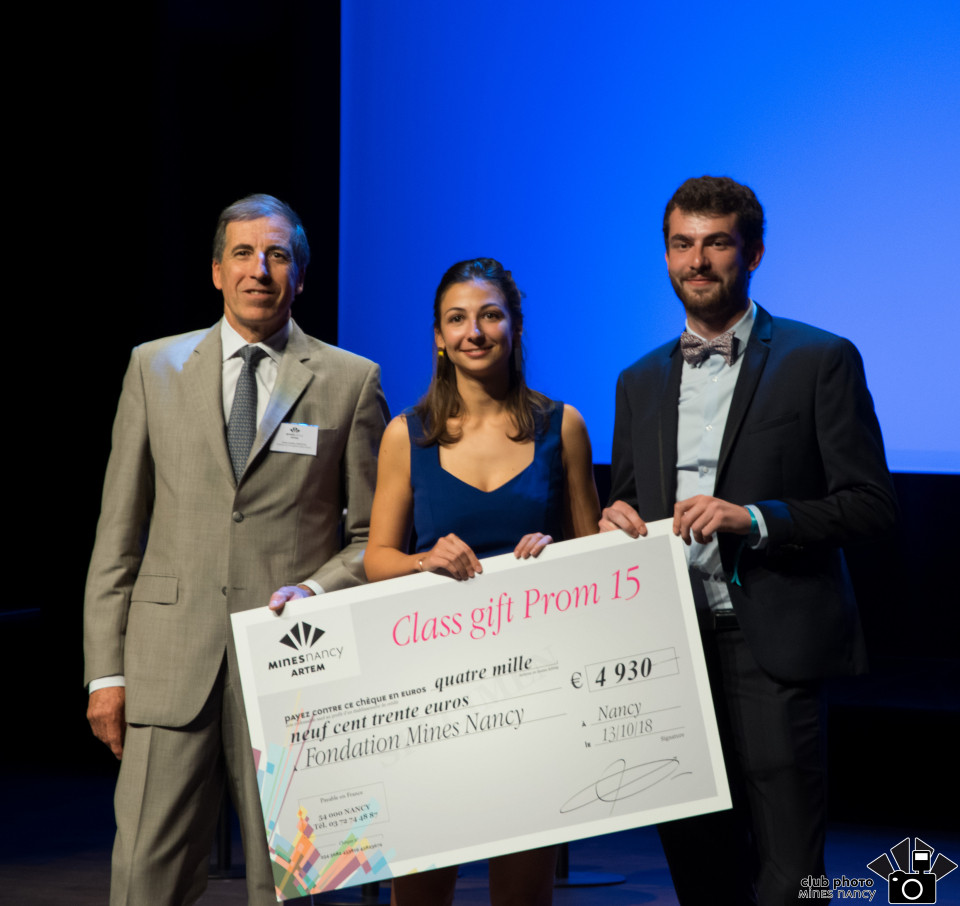 Lors de cette cérémonie, la promotion 2018 a fait un "class gift" de 3000 euros à la fondation Mines Nancy Alumni.