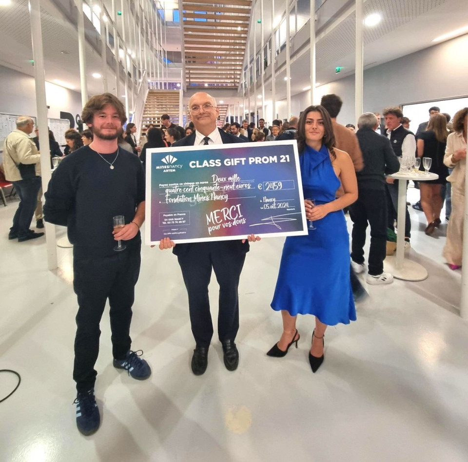 Lors de cette cérémonie, la promotion 2021 a fait un "class gift" de 2459 euros à la fondation Mines Nancy Alumni.